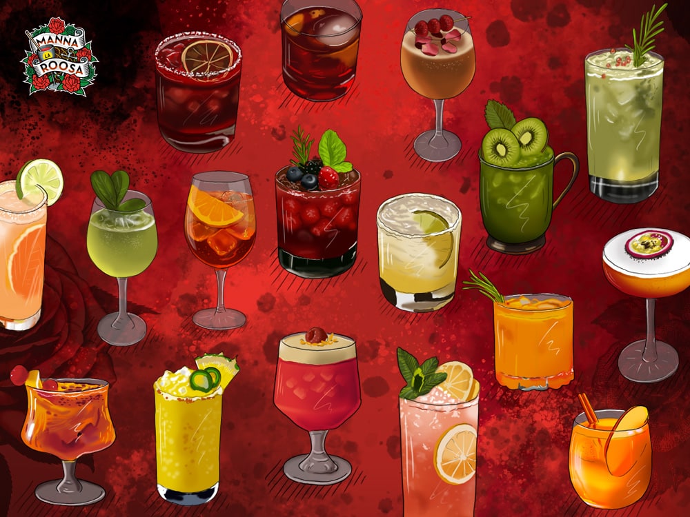 Restoran Manna La Roosa uus kokteilimenüü on valmis. Sai tehtud päris korralik kogus illustratsioone selle jaoks.